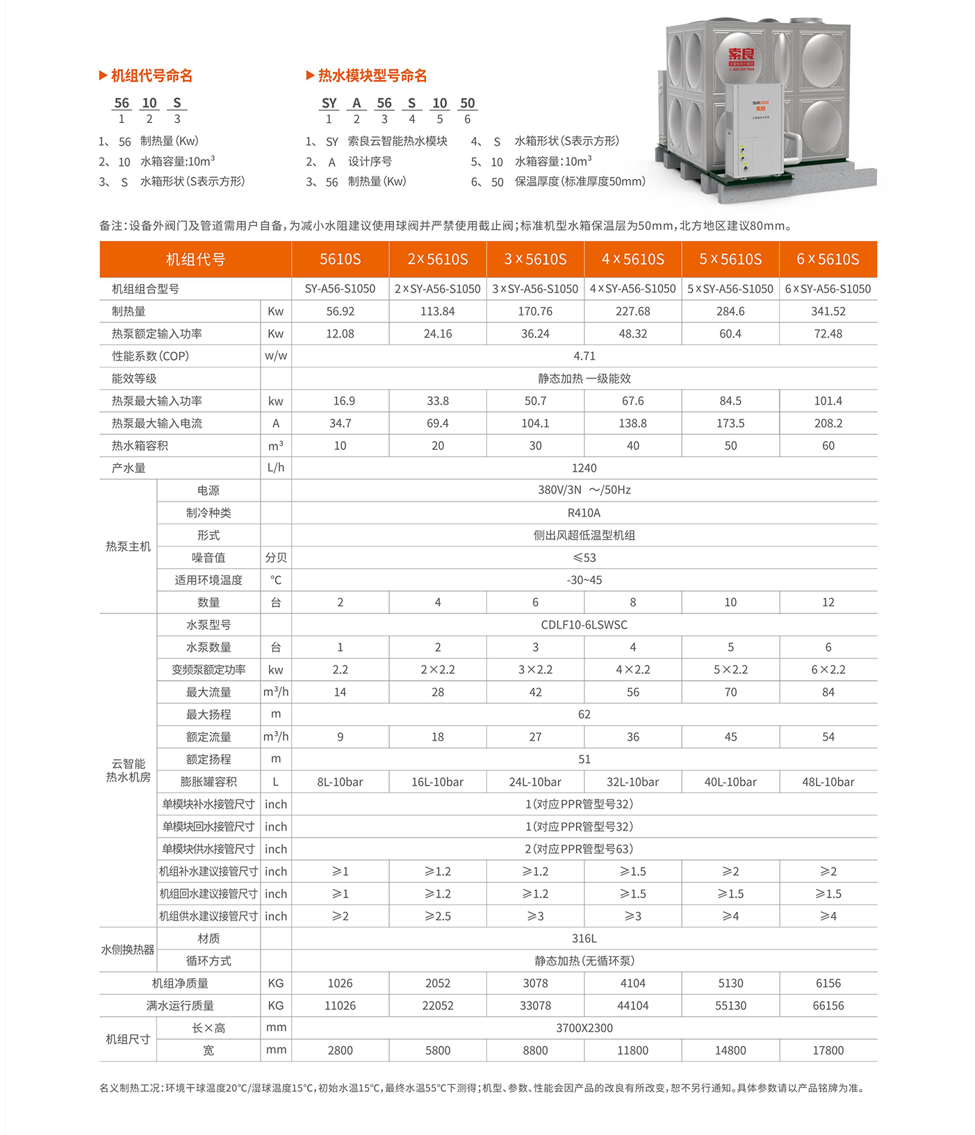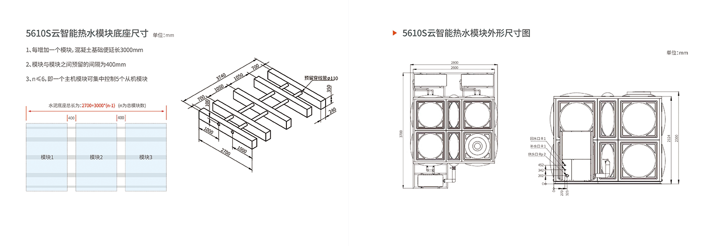 索良云智能热水模块是一套将超低温热泵主机、水箱、云智能热水机房、及配套设备,安装固定在钢结构上的大型模块化热水装置,9实现热水系统的安装模块化、扩展模块化、控制模块化等。