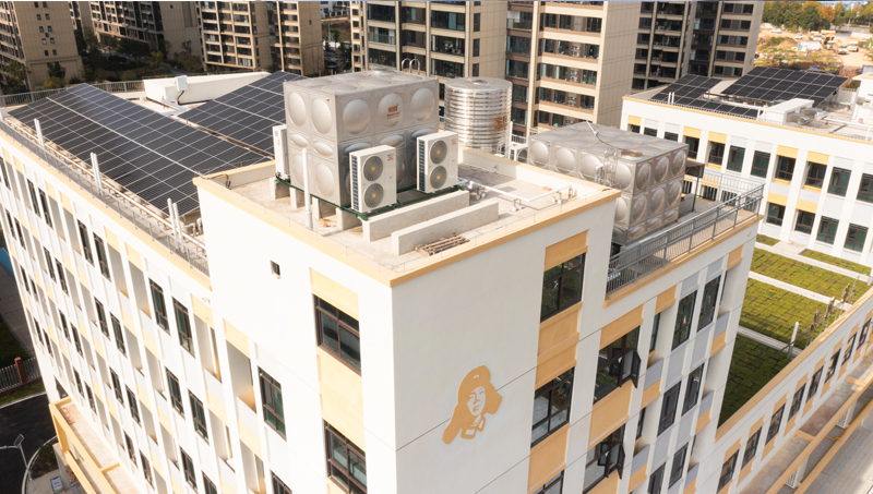 AI管家+光伏未来!雷锋学校云智能热水模块主体安装完成,索良实业打造绿色智慧新标杆!