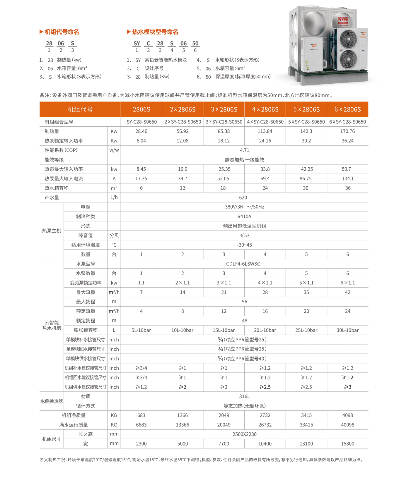 索良云智能热水模块是一套将超低温热泵主机、水箱、云智能热水机房、及配套设备,安装固定在钢结构上的大型模块化热水装置,9实现热水系统的安装模块化、扩展模块化、控制模块化等。