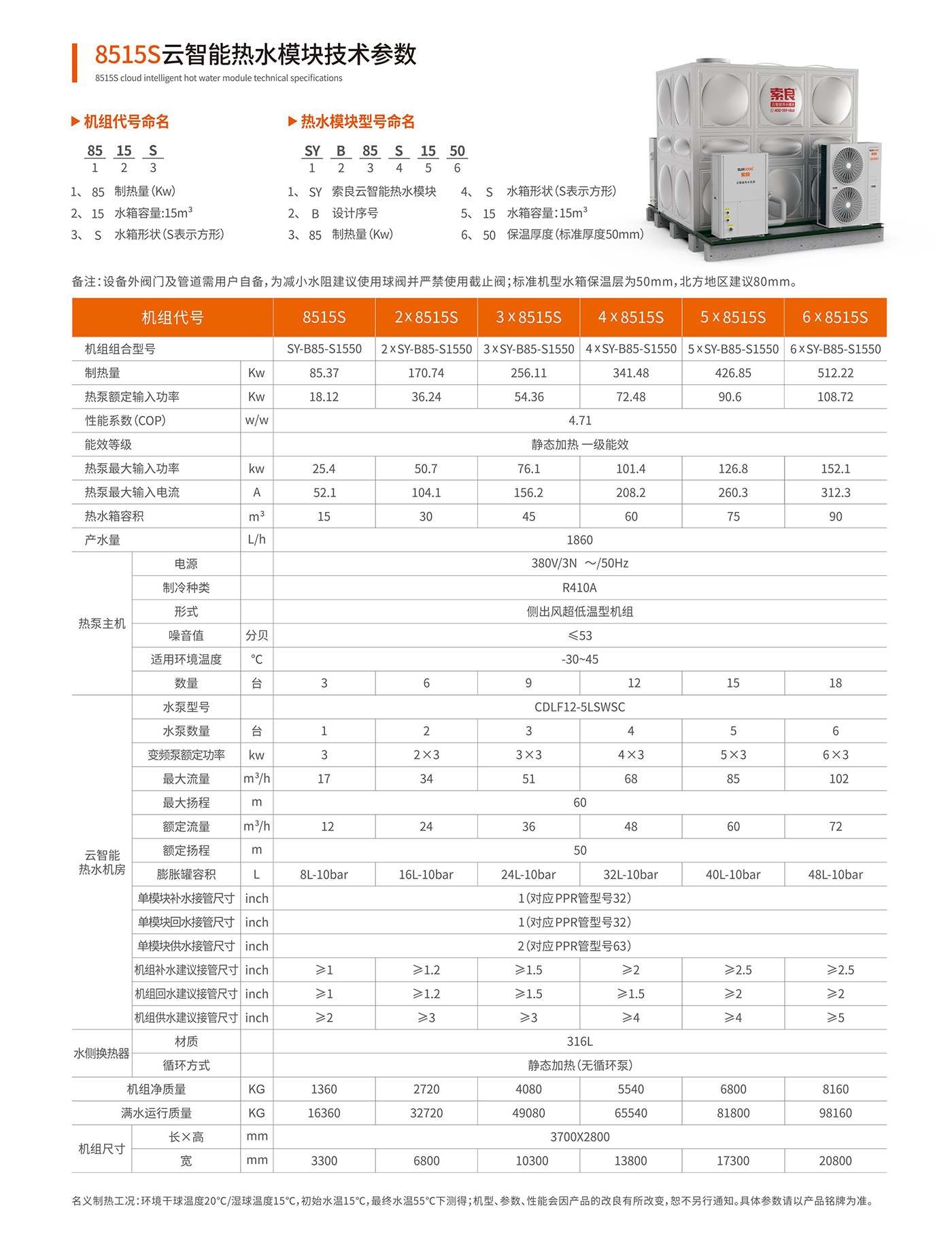 热水模块采用多种创新技术,实现美观、节能、智慧等优势;同时云智能热水模块搭配索良云智能控制系统,结合智能回水,智能补水以及智能热水温度控制,变频恒压水泵分级管理,自适应环境水温管理,自适应环境温度主机启停管理,实现更优节能策略,I0T云端集中控制,托管运维,大幅降低客户管理成本,打造主动式能源管理新模式。